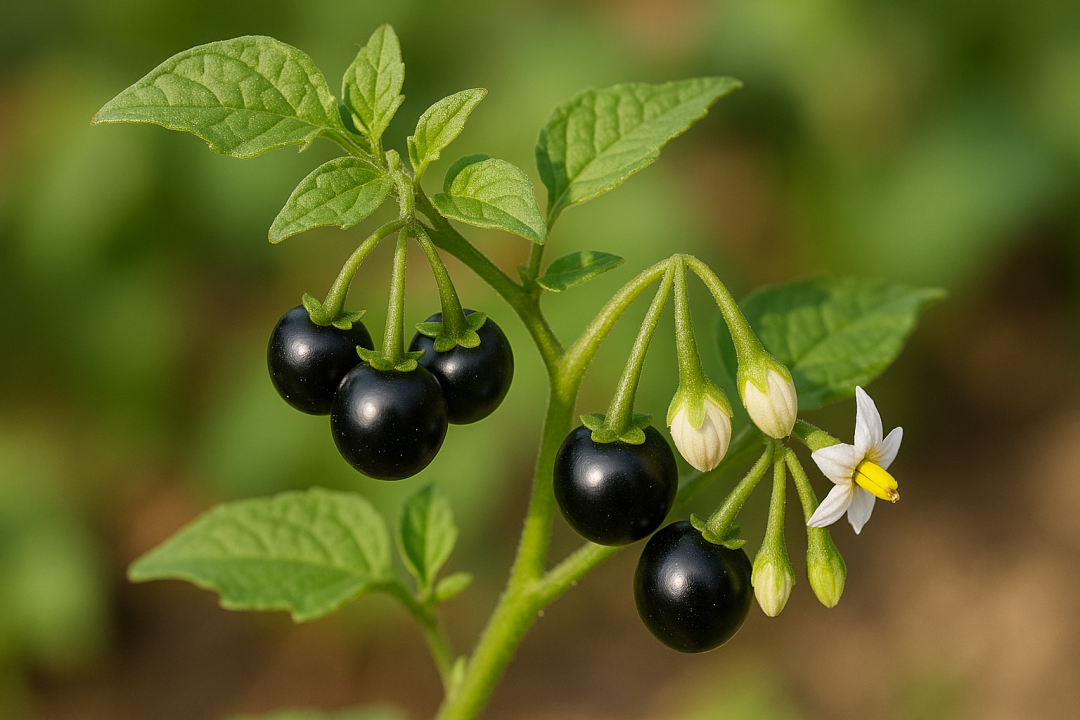 정창, 옹종, 단독, 가려움증, 타박염좌, 만성 기관지염, 급성신염을 치료한다. 피로를 풀고 수면 시간을 적게 하며 허열종을 제거한다. 까마중 어린 싹은 열을 제거하고 혈을 풀어준다.